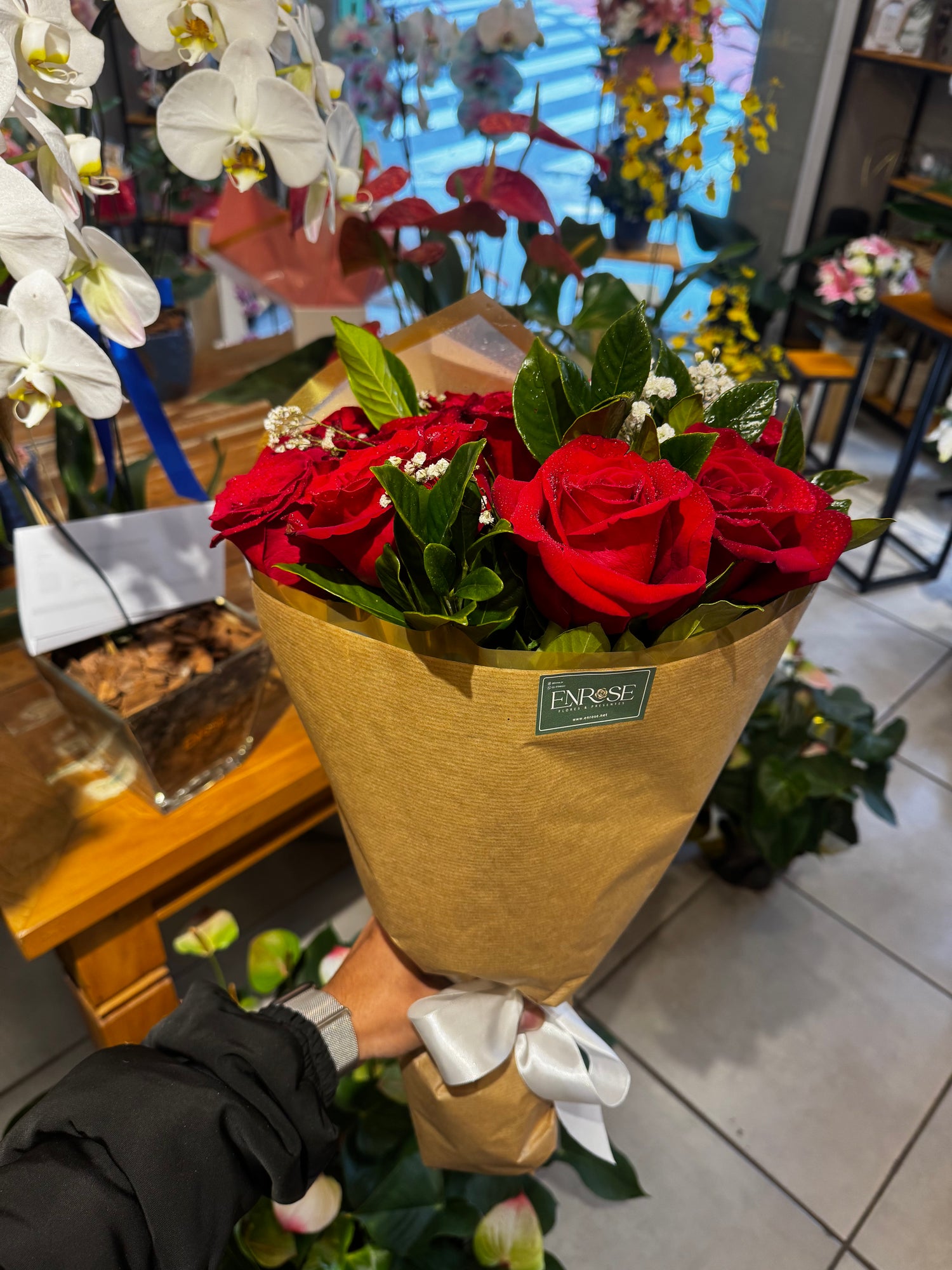 Buquês de rosas frescas que expressam amor, elegância e sofisticação em cada detalhe.