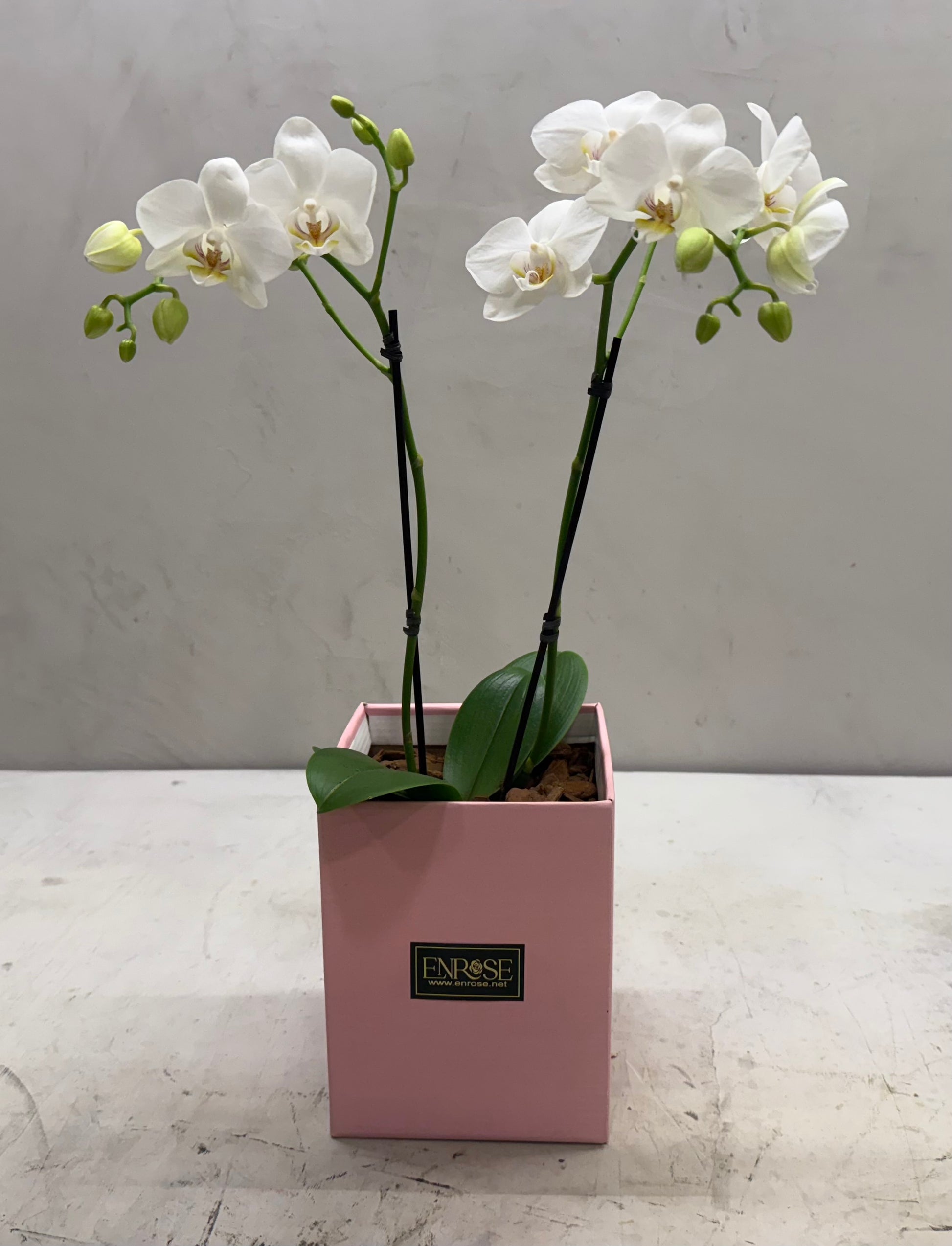 Add a touch of sophistication to your space with delicate mini white orchids, presented in an elegant box by ENROSE. Perfect for gifting or decorating, these flowers bring a special charm and discreet beauty. Available now in São Paulo.